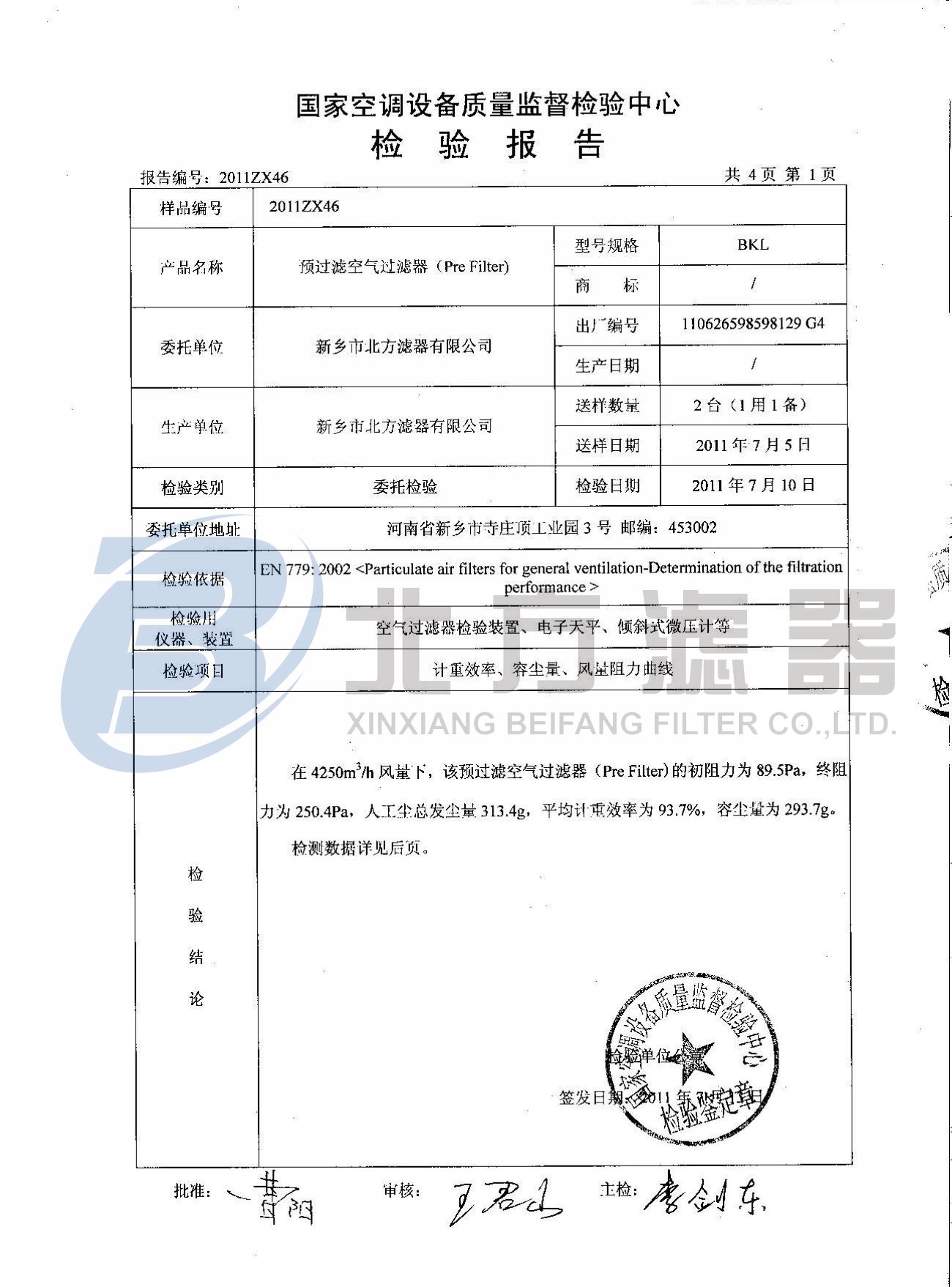 當前位置 : 主頁 > 關于我們 > 榮譽資質 -預過濾空氣過濾器檢測報告
